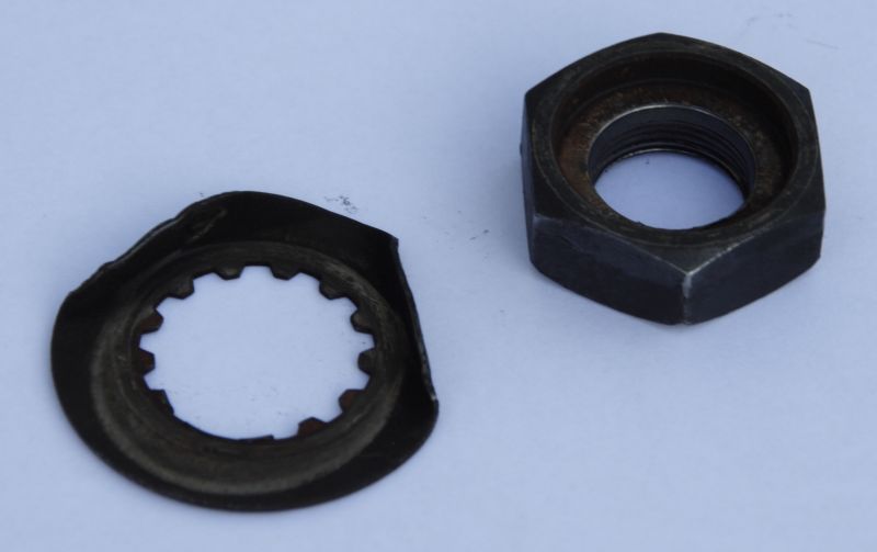 Das dürfte dann (trotz anfangs genügendem Anzug des Ritzels) zu leichten Verdrehbewegungen des Ritzels mit daraus folgendem Lösen der Mutter folgen ....