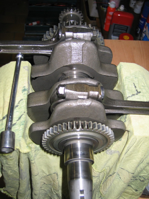 uuups, zwei gleiche Fotos. Franz hat recht. Die KW auf OT-Markierung ausrichten und darauf achten, das sich die KW nicht mehr verdreht. Dann die obere Ausgleichswelle entsprechend den Markierungen an Gehäuse und Zahnrad montieren.